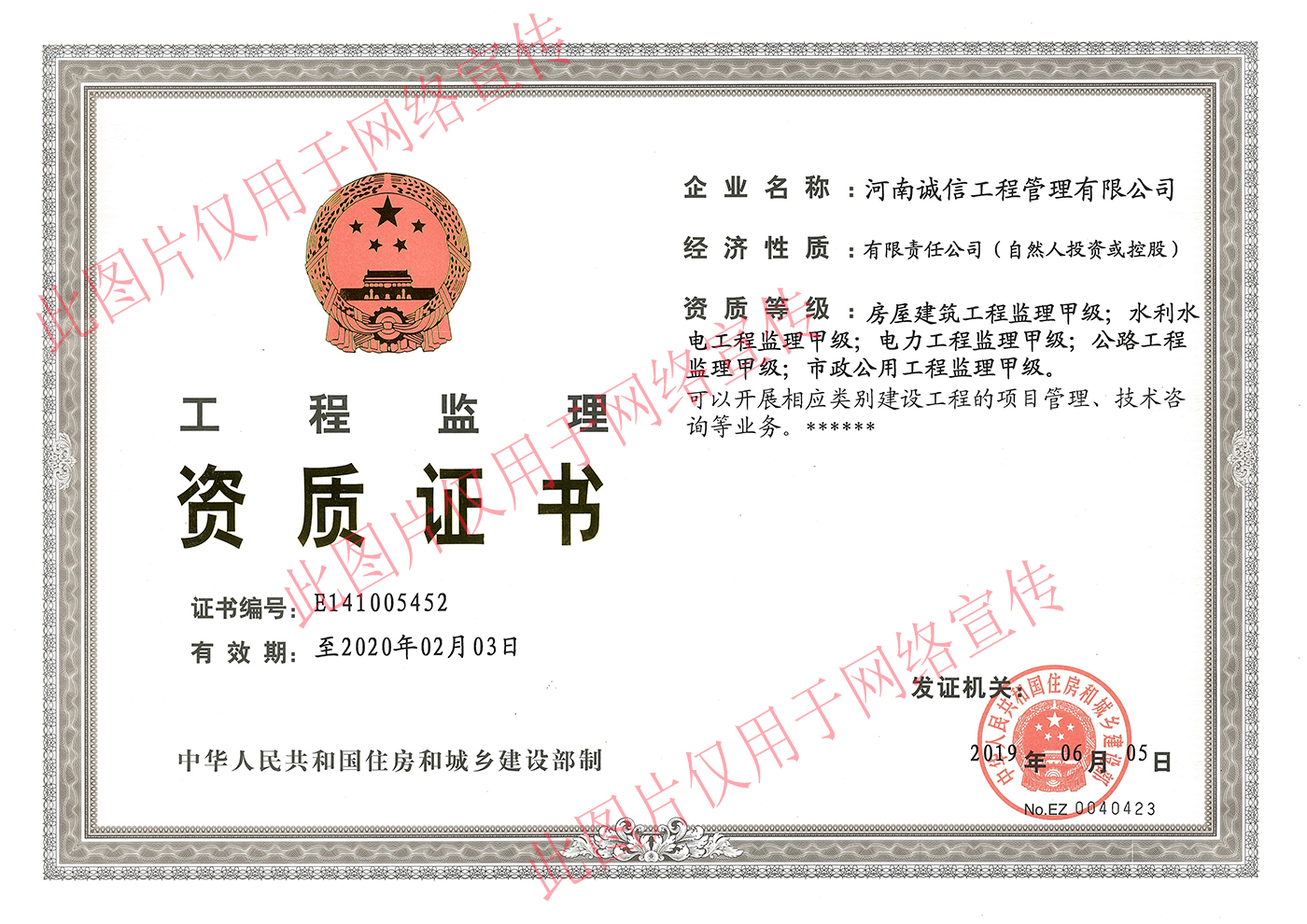 目前為止,河南誠(chéng)信已經(jīng)擁有房屋建筑工程監(jiān)理甲級(jí)資質(zhì)、市政公用工程監(jiān)理甲級(jí)資質(zhì)、公路工程監(jiān)理甲級(jí)資質(zhì)、水利水電工程監(jiān)理甲級(jí)資質(zhì)、電力工程監(jiān)理甲級(jí)資質(zhì)、水利部頒發(fā)的水利工程施工監(jiān)理甲級(jí)資質(zhì)、河南省人防辦頒發(fā)的人防工程監(jiān)理乙級(jí)資質(zhì)、工程造價(jià)咨詢甲級(jí)資質(zhì)、工程招標(biāo)代理機(jī)構(gòu)甲級(jí)資質(zhì)、財(cái)政部登記注冊(cè)的政府采購(gòu)代理資質(zhì)及國(guó)家發(fā)展和改革委員會(huì)頒發(fā)的中央投資項(xiàng)目招標(biāo)代理機(jī)構(gòu)資質(zhì)等多項(xiàng)資質(zhì),實(shí)現(xiàn)了業(yè)務(wù)范圍的不斷拓展和延伸,極大地提高公司的資源統(tǒng)籌運(yùn)用能力,使得各業(yè)務(wù)的整合發(fā)展得到了進(jìn)一步的加強(qiáng),為今后在多個(gè)專業(yè)領(lǐng)域開展項(xiàng)目咨詢業(yè)務(wù)打下了堅(jiān)實(shí)的基礎(chǔ)。